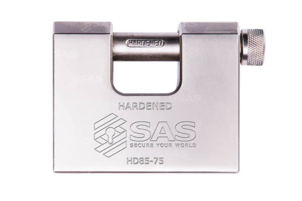 The SAS HD85-75 steel closed shackle padlock delivers strong security for many uses. For example, the solid steel c-type padlock secures containers, shutter doors, and more. The closed shackle padlock resists cutting and corrosion effectively because it uses 75mm hardened stainless steel.