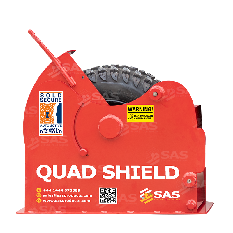 SAS have designed and launched the new Quad Shield Wheelclamp locking system, primarily to protect ATVs and UTVs from the growing theft problems owners are encountering. The clamp system, bolted to the ground, allows you to drive your ATV or UTV into it.